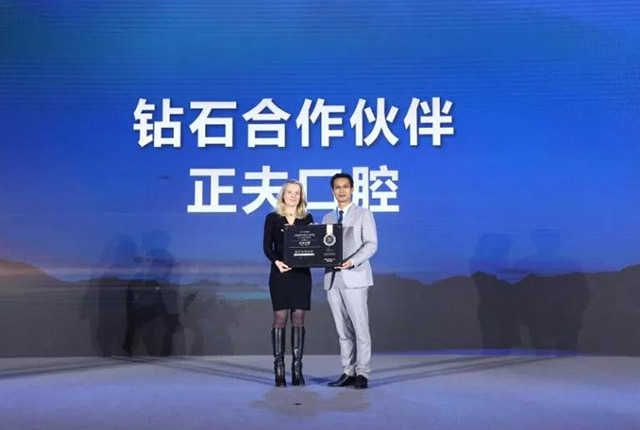 在此次盛会上,士卓曼集团DSO全球负责人Petra Rumpf女士为正夫口腔再次颁发了“钻石合作伙伴”授权奖牌并致辞,正夫口腔集团医疗部副总张运发先生代表正夫口腔接牌,这标志着正夫口腔再次作为深圳口腔连锁领跑品牌,凭借着优秀的专家团队、先进的种植诊疗系统、完善的管理体系、强劲的发展潜力、高标准质量水平再次成为士卓曼在深圳地区的优秀合作伙伴,士卓曼集团与正夫口腔将继续保持紧密战略性合作伙伴,在发展之路上成为最佳拍档,我们共同努力来帮助更多的消费者拥有健康的牙齿和完美的笑容。