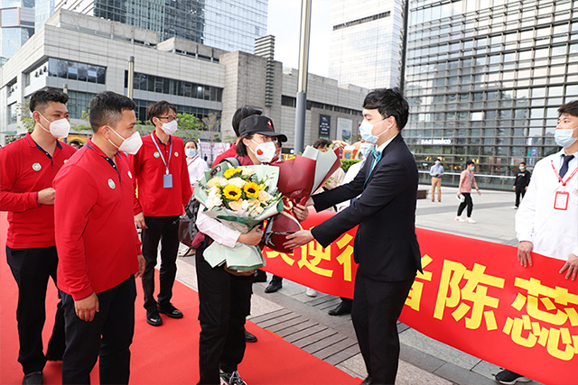 正夫口腔集团董事长杨瑞锋代表正夫集团旗下25家门店和500余职工,在对圆满完成任务返深的抗“疫”英雄陈蕊蕊表达敬意。同时,也对她长期以来对正夫口腔医疗卫生事业所作出的积极贡献和在疫情防控中付出的艰辛努力表示感谢,希望她继续不忘初心、继续前行,推动守护健康事业再上新台阶。