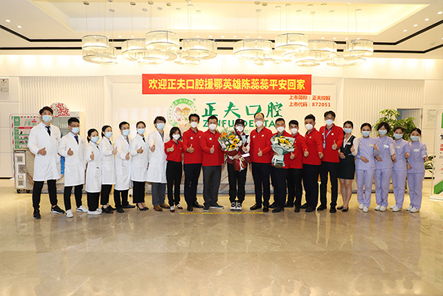隆重的欢迎仪式后,驰援武汉正夫口腔陈蕊蕊女英雄与正夫口腔领导、门诊所有医护人员一起合影留念,这份荣誉将永远保存在正夫口腔档案,留作历史纪念。以此向抗疫英雄们致敬!欢迎回家!