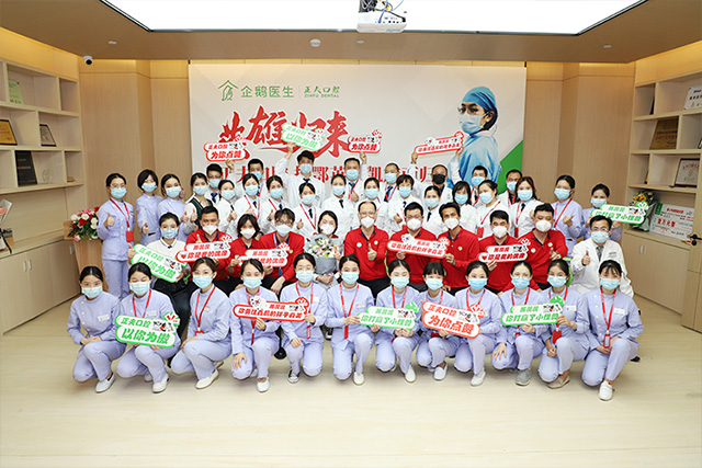 援鄂英雄陈蕊蕊与正夫口腔领导及员工代表合影