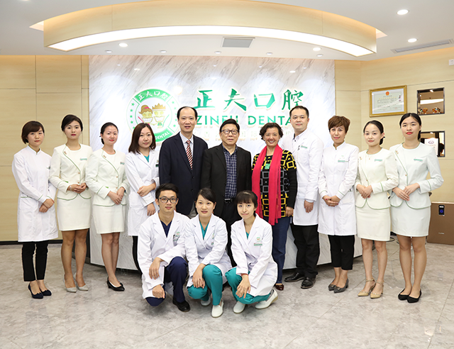 签约仪式结束后,樊明文会长等一行人还莅临了正夫口腔总公司以及宝安旗舰店,深圳正夫口腔董事长杨瑞锋及副总经理陈子成、医疗副总张峻维全程陪同参观。在参观的同时,会长樊明文先生对正夫口腔的技术、环境、先进的设备赞不绝口。