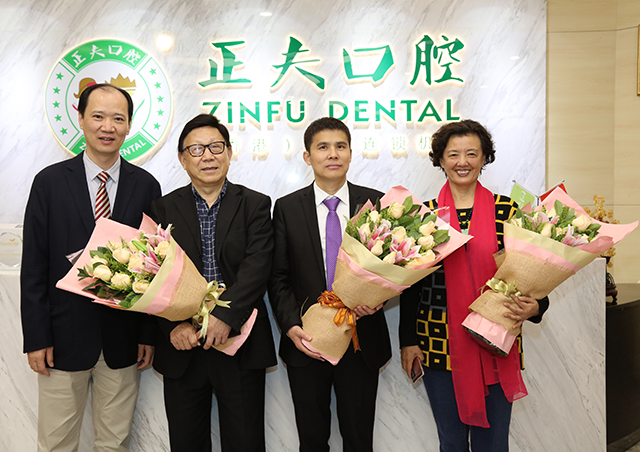 深圳正夫口腔投资控股有限公司董事长杨瑞锋与中华口腔医学会名誉会长樊明文、中华口腔医学会秘书长王渤、上海品瑞医疗器械设备有限公司董事长周龙华深入交流,希望以此为契机,双方开展精诚合作,共同努力推动口腔工作的发展,共创更美好的口腔未来而共同努力。