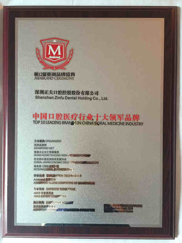 深圳正夫口腔控股股份有限公司获得“中国口腔医疗行业十大领军品牌”荣誉
